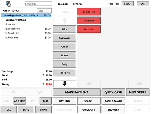 Our POS system is a windows/touch/web based system that is fully integrated with all Netbookings modules. It suits reception desks, kiosks, cafes, restaurants, and general retail sales for Netbookings clients requiring a fast and easy to use touch screen POS system.